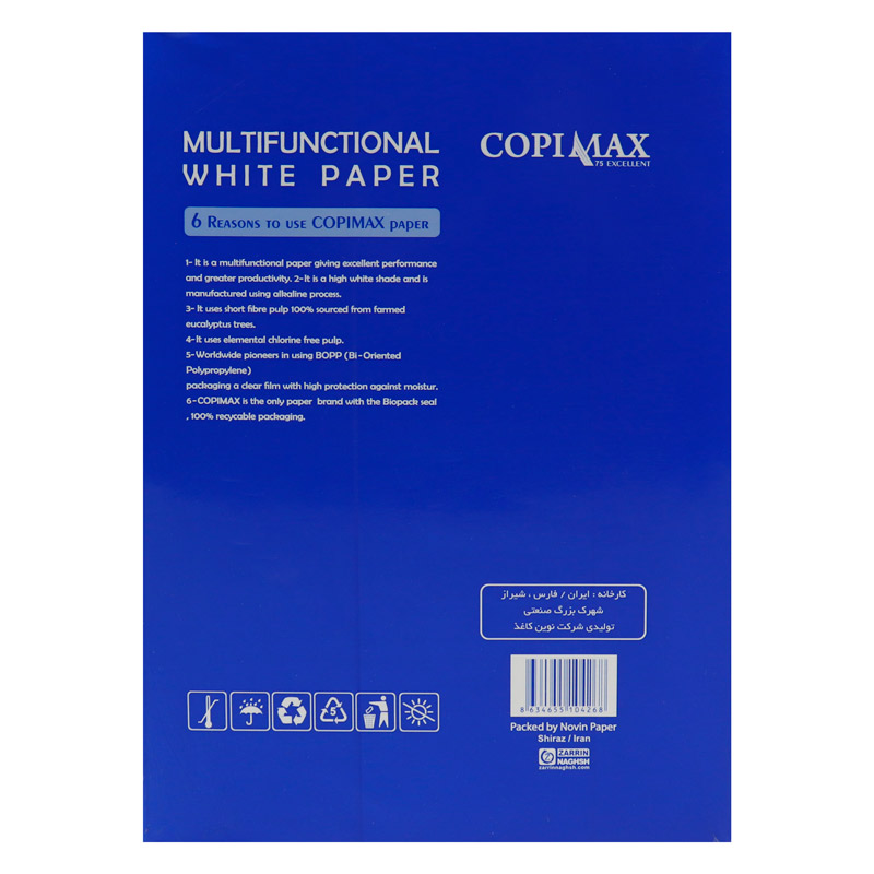۷۵ گرم، در رنگ سفید مناسب برای کپی، فکس، نوشتن جزوه و …